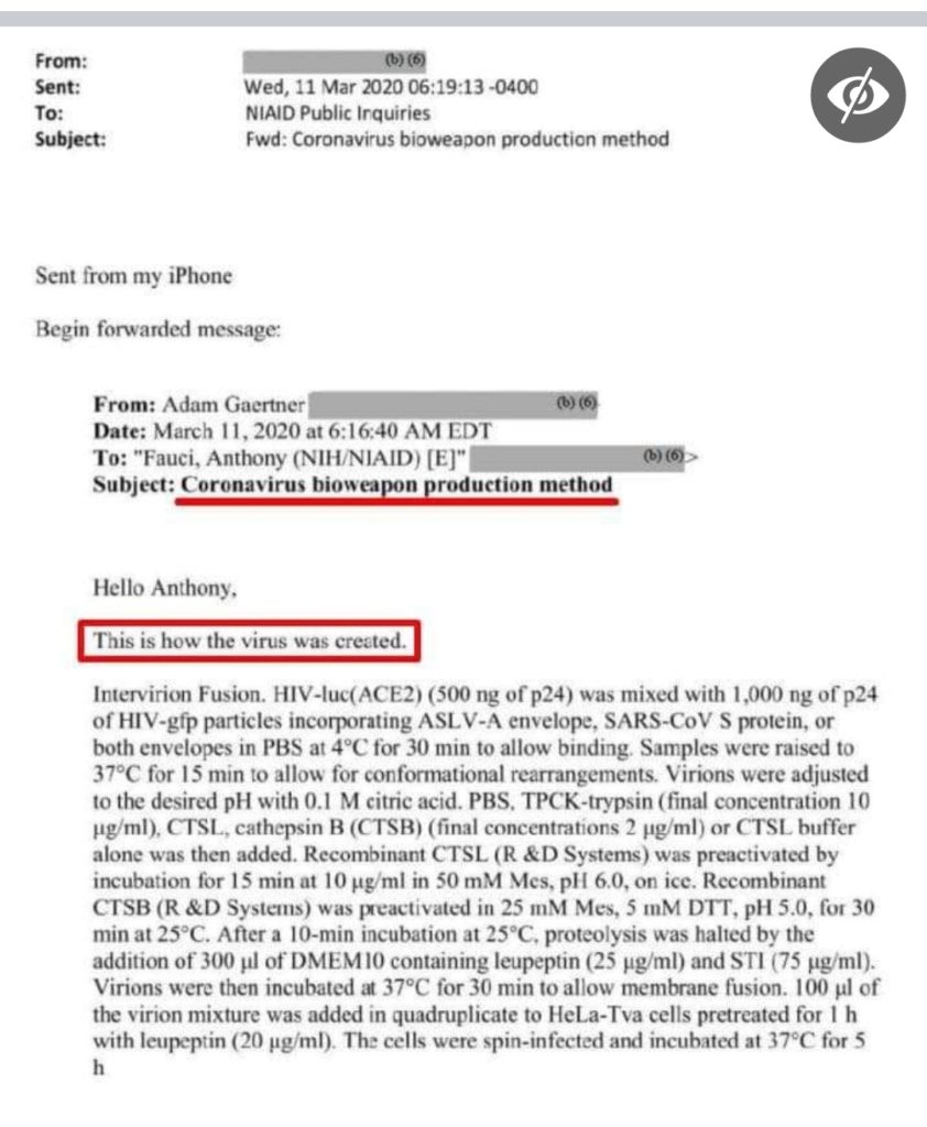 U mailu Fauciju ukratko je opisana tehnička procedura nastanka KOVID-19 virusa, čudovišta kojem se danas klanjaju sve vlade svijeta.