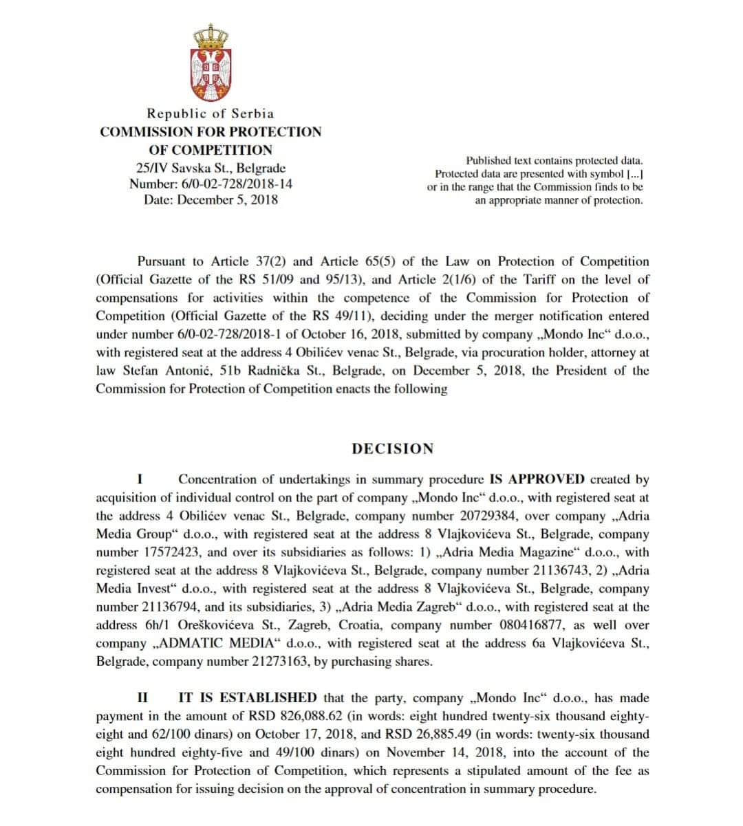 Tu je važno istaknuti da prelaskom tvrtke Adria Media Serbia Kurir-infou, ona prestaje postojati te se osniva tvrtka Adria Media Grupa (AMG), pod koju će godinu dana kasnije završiti i Adria Media Zagreb.