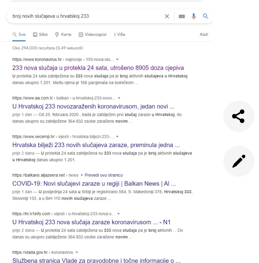 U Hrvatskoj je isto bio isti broj zaraženih, 233, ali od kada je počeo kružiti video o toj namještaljki , kod nas je broj smanjen na 213, ali se u GOOGLE tražilici vidi da je prije pisalo 233!.