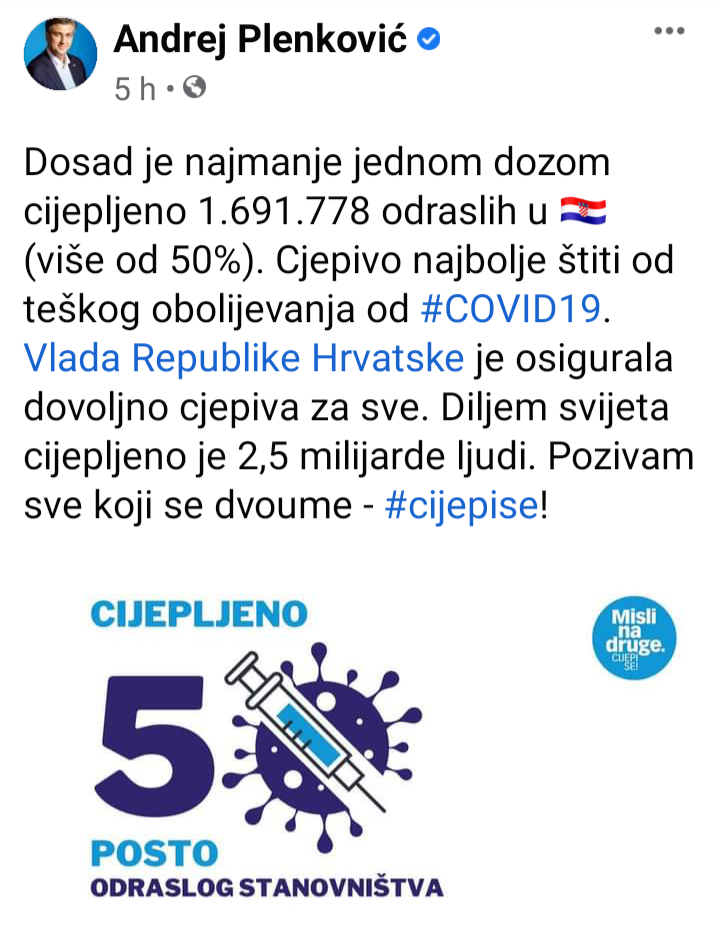 U roku doslovno 10 sekundi maknut je naš komentar na profilu Andreja Plenkovića koji poziva na cijepljenje!