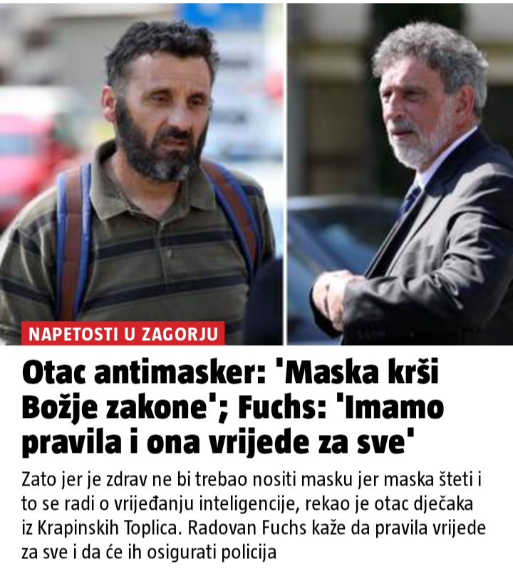 Za to vrijeme veterinar Fuchs radi strašno omalovažavanje roditelja koji hrane i odgajaju svoju djecu u Krapinskim toplicama. Roditeljima prijeti policijom, hadezenjara koja je na čelu škole potpomognut sa sdepenjarom na županijskom nivou prijeti roditeljima koji ne puštaju djecu u školu sa maskom ili ne žele da djeca nosi masku.