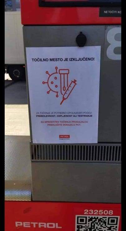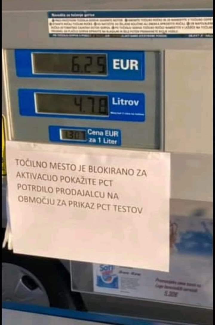 Benzinske pumpe u Sloveniji više ne toče gorivo zdravim ljudima koji se nisu cijepili. Petrol postaje zdrastvena ustanova za Billa Gatesa?