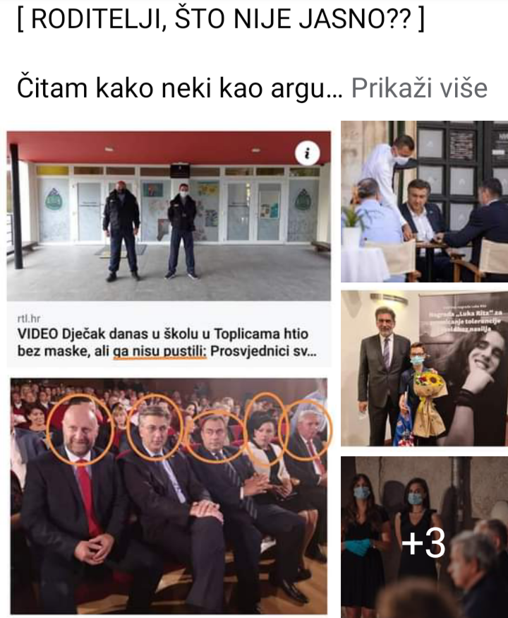 Evo vam dolje dokaza da NE nose svi maske. Ne nosi ju vaš župan, ne nosi ju premijer, ne nosi ju ministar obrazovanja, ne nosi ju ministar zdravlja, ne nosi ju gradonačelnik Zagreba, ne nosi ju gradonačelnik Đurđevca…