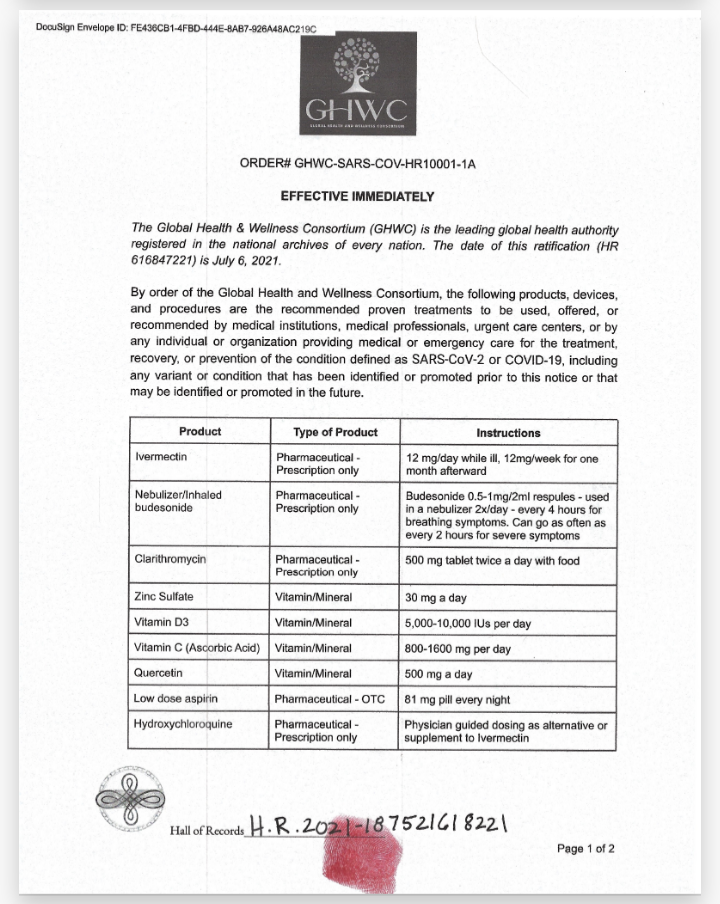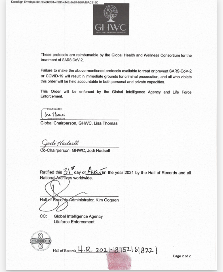 Dokument koji su primile sve vlade svijeta. Prema tome dokumentu su trebale postupiti još od kraja kolovoza 2021., ali se iz događanja može zaključiti da su to odlučile zanemariti, nadajući se da se neće doznati da su primile dokument.