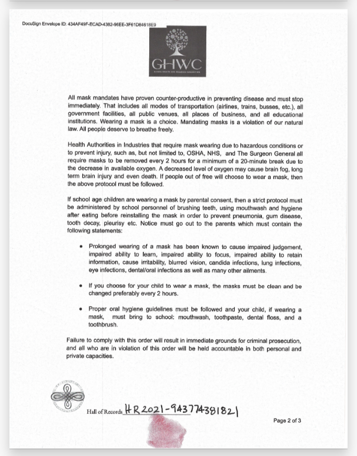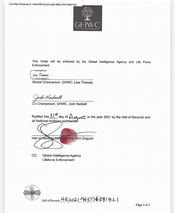Ovim putem Vas želimo upoznati s tim dokumentom, koji je niz izvršnih odredbi, sve ratificirano u “Hall of records”. Pretpostavljamo da bi kompetentni pravnici ovim mogli koristiti, i srušiti “zločinačku organizaciju” koja se naziva “vlada”.-piše nam A. S.