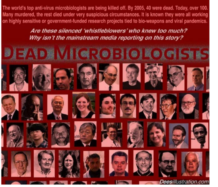 Još 2014. tapnewswire.com objavio je zanimljiv popis umrlih mikrobiologa izražavajući već tada svoju sumnju oko njihovih smrti. Sasvim opravdano.