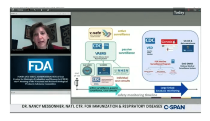 Dana 10. prosinca 2020. Uprava za hranu i lijekove (“FDA”) održala je sastanak na temu “Cjepivo protiv Covid-19 i odobrenje za hitnu upotrebu” tijekom kojeg je dr. Nancy Messonnier , koja je u to vrijeme bila ravnateljica CDC-ovog Nacionalnog centra za imunizaciju i respiratorne bolesti , napravila prezentaciju. Messonnierino izlaganje možete pogledati na istoj poveznici, početak 1:20:54.