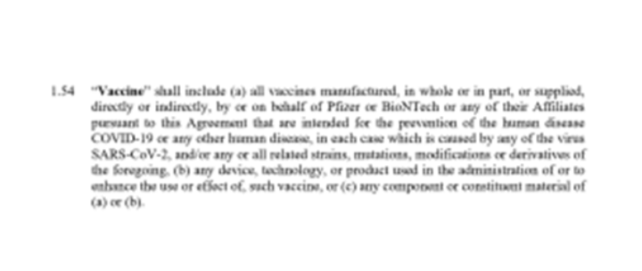 “Prvo”, nastavlja Biber, “razgovarajmo o proizvodu: Sporazum ne obuhvaća samo proizvodnju cjepiva za COVID-19 i njegove mutacije, već i za “bilo koji uređaj, tehnologiju ili proizvod koji se koristi u administraciji ili za poboljšanje korištenje ili učinak takvog cjepiva. „
