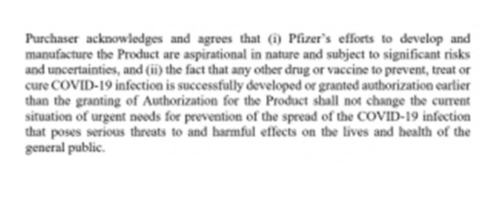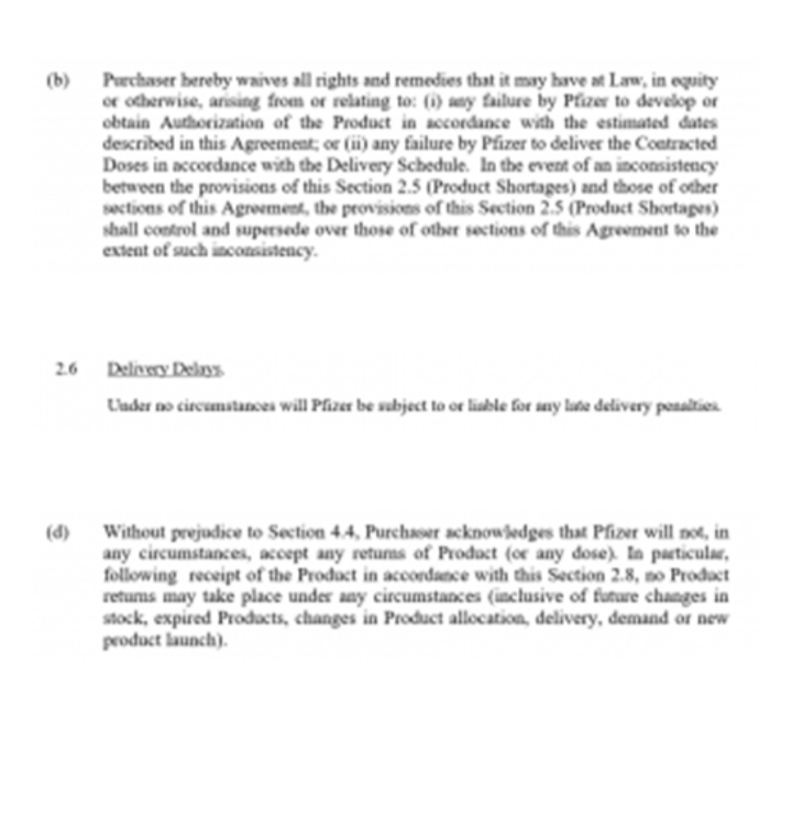 „Samo da pojasnim: „ Kupac se ovim odriče svih prava i pravnih lijekova koje prema zakonu može imati, na pravičnoj osnovi ili na neki drugi način, koji proizlaze ili se odnose na: .. svaki propust Pfizera da isporuči ugovorene doze u skladu s rasporedom isporuke .