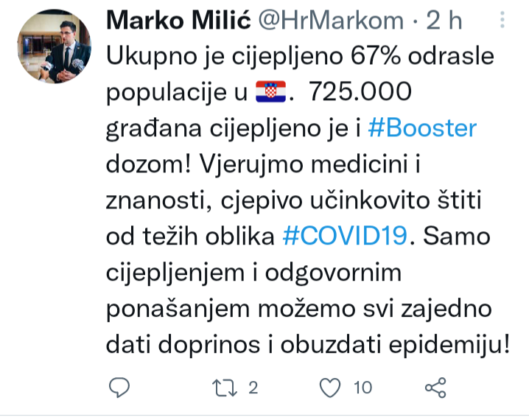 Također sam, iznio podatke smrtnosti u Hrvatskoj ali i u svijetu. Također sam naveo da nije zabilježena povećana smrtnost od COV-19 do početka programa cijepljenja. Tzv. smrti od COV-19 u svijetu i u Hrvatskoj umjetno su napuhavane. Pritom i dalje glavni uzrok smrti ostaju kardiovaskulane i maligne bolesti. Iznio sam i podatak da zemlje u svijetu definiraju smrt od COV-19 ako je bilo koji uzrok smrti u razdoblju od 28/30/60 dana bio udružen s pozitivnim PCR testom što je krajnje neznanstveno i ni u kom slučaju ne smije biti prihvaćeno kao objektivna činjenica. Bojim se da u Hrvatskoj nećemo nikada moći dobiti stvarni uvid u smrtnost od COV-19 kao niti smrtnost od tzv. ‘cjepiva’.
