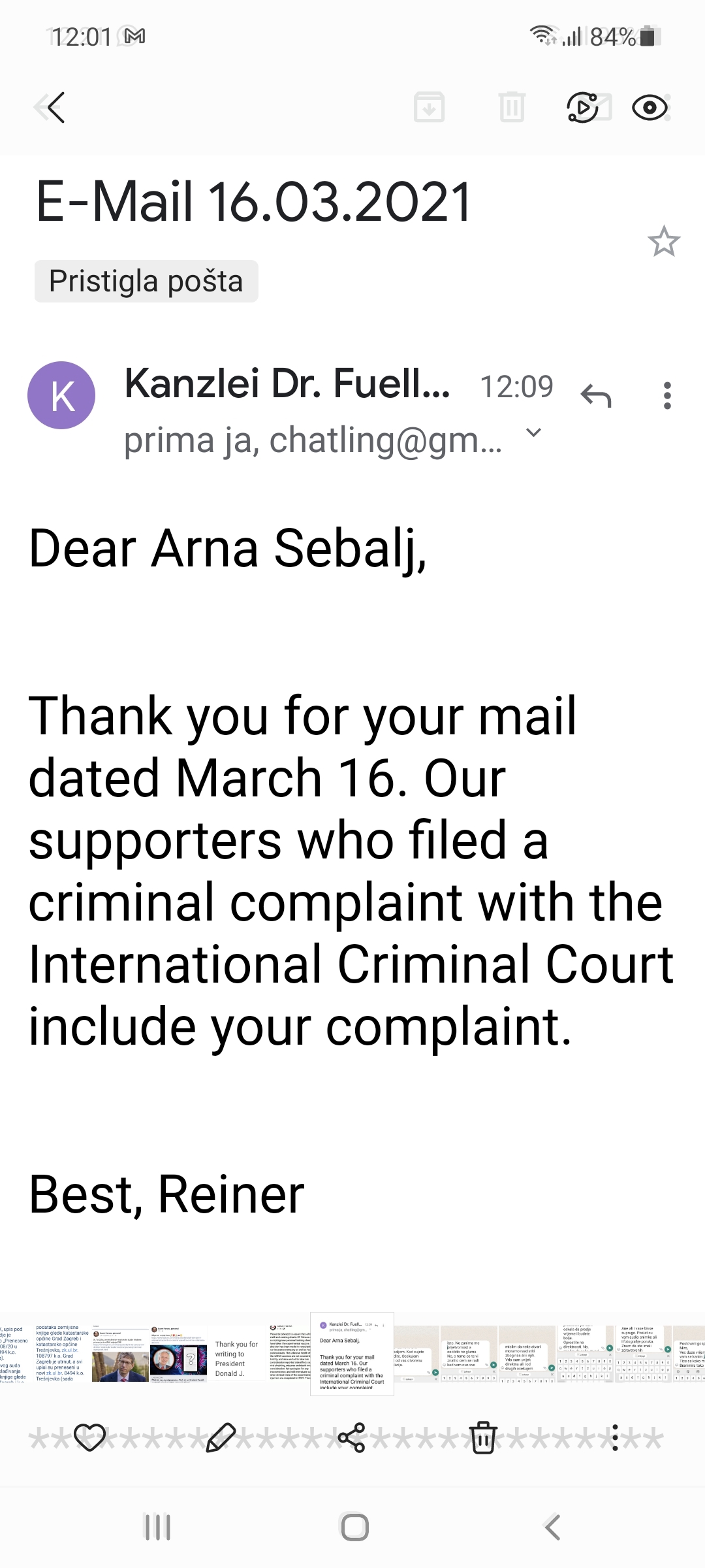 S Dr. Reinerom Fuellmichom sam od samih početaka i sama u kontaktu te sam ga redovito izvještavala o pravnim postupcima koje sam pokretala: