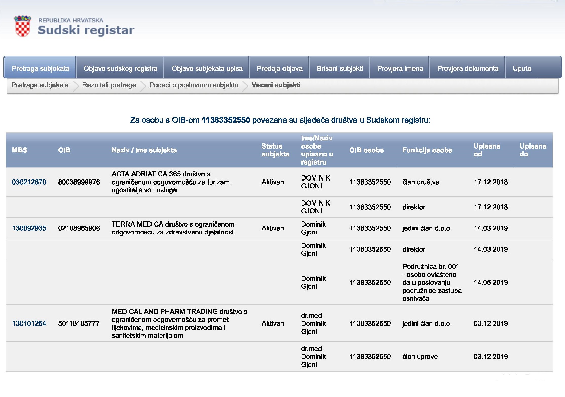Ali idemo dalje, ima još zanimljivosti oko sretne tvrtke Medical and pharm trading d.o.o.