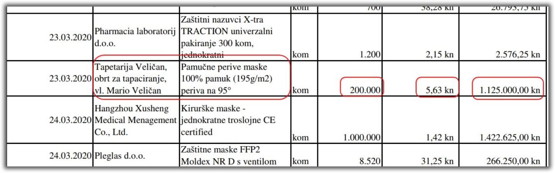 No, nije ovo kraj. Zanimljivo je tko sve sudjeluje i izradi i nabavi zaštitne opreme, uređaja, testova za Vladu RH. Ima među njima i tapetarija, da, da, tapetarija. Kao Tapetarija „Veličan“ iz Pitomače koja je proizvodila platnene maske za iznos od 1.150.000,oo kuna. Pitam se za koga su rađene?