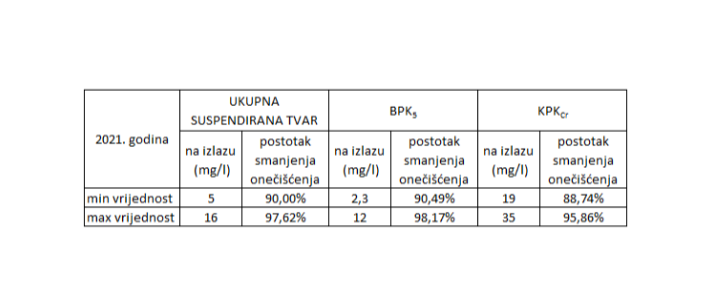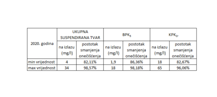 Uvidom u rezultate analiza otpadnih voda uzorkovanih na Centralnom uređaju za pročišćavanje otpadnih voda aglomeracije Zagreb (UPOV Zagreb) koje su dostavljene za 2020. i 2021. godinu od strane isporučitelja vodne usluge, utvrđeno je da otpadna voda na izlaznom oknu uređaja ispunjava zahtjeve za I. i II. stupanj pročišćavanja iz Pravilnika o graničnim vrijednostima emisija otpadnih voda („Narodne novine“ broj: 26/2020). Nastavno je prikazan dio statističke obrade rezultata analiza otpadnih voda dostavljenih za 2020. i 2021. godinu.