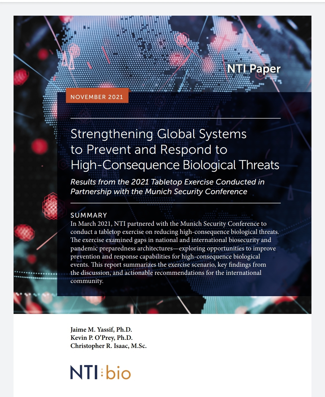 “Stregthening Global Systems to Prevent and Respon to igh Consequence Biological Threats–Results from 2021 Tabletop Exercise Conducted in Partnership with the Munich Security Conference”, dokument se nalazi na: