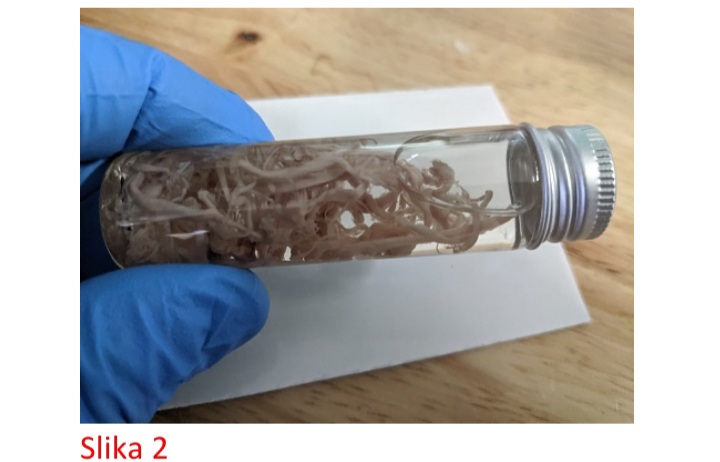 Evo bočice ovih sirovih ugrušaka, opranih od krvi i očuvanih, prije bojenja: