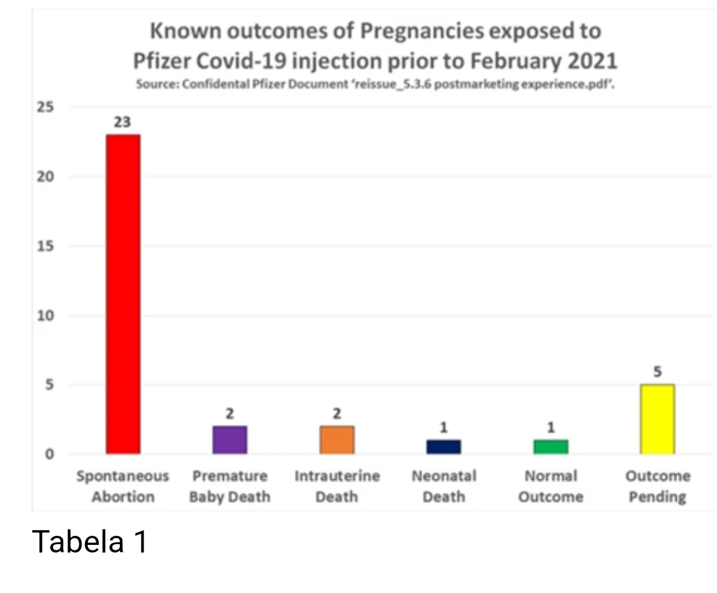 Prethodno je  objavljen članak koji opisuje šokantno otkriće da je 82% – 97% žena pretrpjelo spontani pobačaj ili gubitak svog novorođenčeta nakon Covid injekcija prema dokumentima koje je američka Uprava za hranu i lijekove (“FDA”) pregledala PRIJE izdavanja hitne uporabe za “cjepivo” protiv Covida tvrtke Pfizer-BioNTech. (By March 2021 Pfizer And FDA Knew Covid Injections Were Lethal for Unborn Babies). Prema dokumentima koje je Pfizer dostavio u svom zahtjevu za odobrenje FDA-e, od 270 trudnica koje su dobile injekciju, “nikakav ishod nije osiguran za 238 trudnoća”.