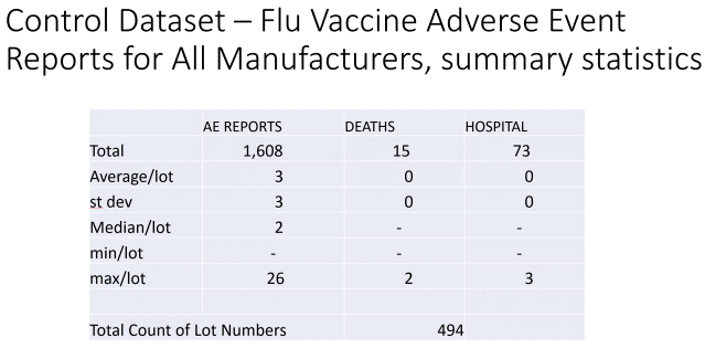 Najveći broj prijava nuspojava podnesenih VAERS-u u odnosu na pojedinačni broj serije cjepiva protiv gripe bio je 26. Što još više šokira otkriće da je najveći broj prijava nuspojava podnesenih VAERS-u u odnosu na jedan broj serije Pfizera Cjepiva protiv Covid-19 do 15. listopada 2021. bilo je 3563, a to nije anomalija.