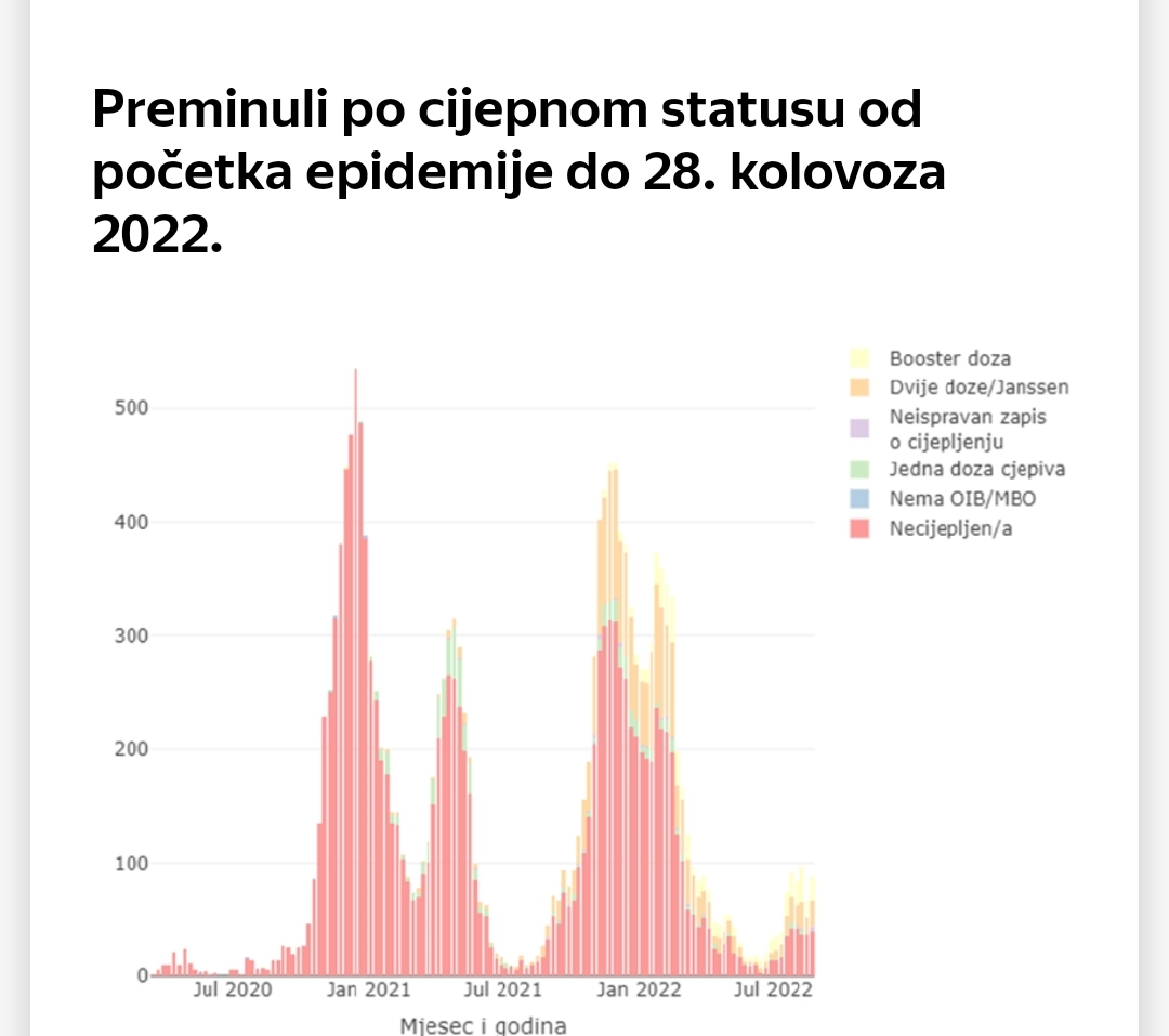 Preminuli po cijepnom statusu od početka epidemije do 28. kolovoza 2022.