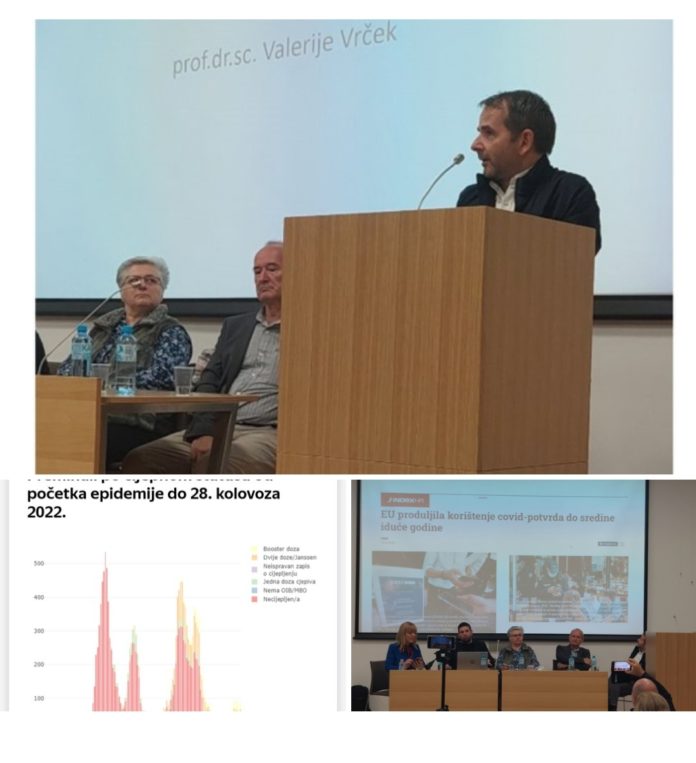 Na kraju je prof. Vrček rekao da je pripremio tekst o antivakserima kao žrtvenim jarcima, ali to u diskusiji možemo dotaknuti tu temu iako je ovdje bilo navedeno više puta, no tu ne mislim samo na antivaksere, tu su i ravnozemljaši, tu su oni koji drugačije misle, to je dakle i svaki skeptik. No oni su nužni u ovom ciklusu. To je zanimljiva i društvena tema.