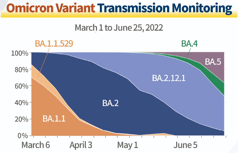 Grafikon ispod prikazuje brze promjene u podvarijantama Omikrona. Još u ožujku 2022. vladalo je veliko zanimanje za BA.1, a pretpostavljalo se da je BA.1 problem s kojim će se ljudi nositi u budućnosti.