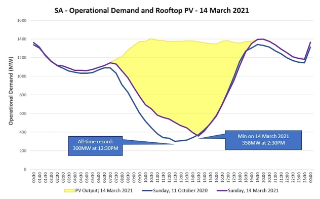 Taj planirani prekid značio je strože ograničenje od uobičajenog na količinu viška električne energije koju Južna Australija može da izveze. U jednom trenutku, više od 70 posto državne potrošnje energije dolazilo je samo od krovnih solarnih panela.