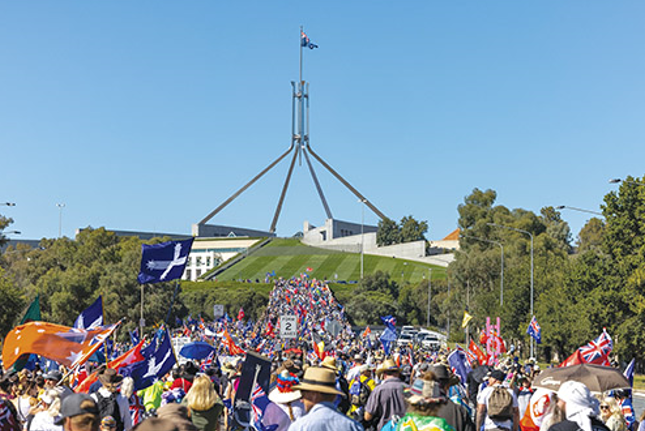 U članku “Je li policija koristila zvučno oružje protiv Australaca koji su mirno prosvjedovali protiv tiranije protiv Covida?”, Reignite Democracy Australia upozorio je da je uporaba LRAD-a “još jedan korak prema militariziranom suzbijanju legalnih prosvjeda u Australiji”. Rekli su da je ovo nečuveni napad vlade na njezin narod. Mediji su, očekivano, raspalili propagandu kako bi potisnuli priču, ali prosvjednici iz Canberre koristili su sve društvene mreže kako bi pokazali što se događa na terenu i, za njih, koliko je demokracija u Australiji pala.