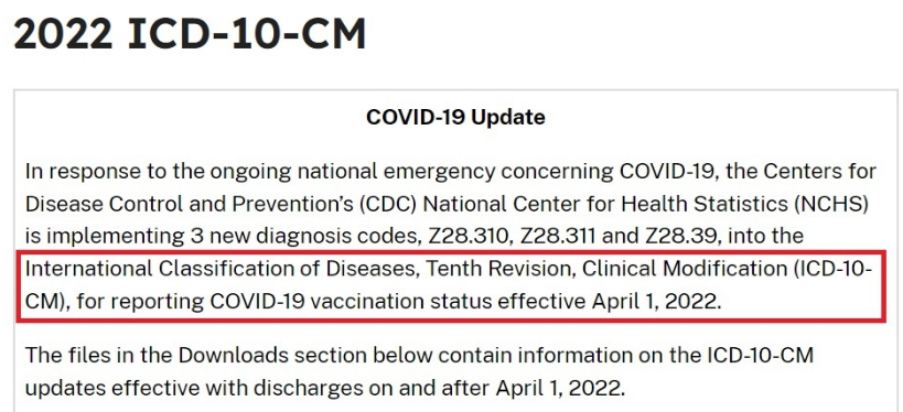 Vaccineimpact.com je prije tri dana objavio posebno izvješće Lea Hohmanna o tome kako kodovi Međunarodne klasifikacije bolesti (ICD) koje koristi medicinska industrija za potrebe naplate pod Medicare-Medicaidom i privatnim osiguravajućim društvima sada uključuju kod za COVID-19 “status cijepljenja”.