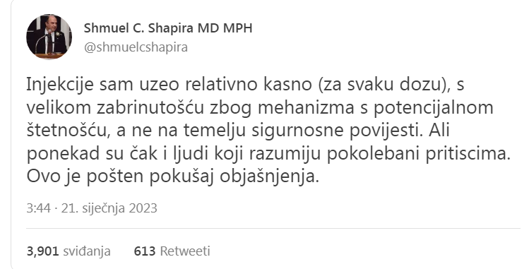 “Postoje druga cjepiva koja su daleko učinkovitija. Postoje zemlje s nižom stopom procijepljenosti koje su dobro podnijele (pandemiju)“, kaže Shapira.