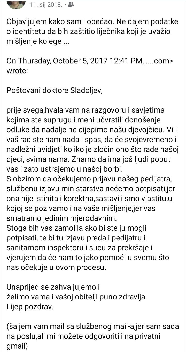 Evo još nekih statusa “govora mržnje” doktora Sladoljeva na kojima mu narod zahvaljuje jer “širi mržnju prema cjepivima”.