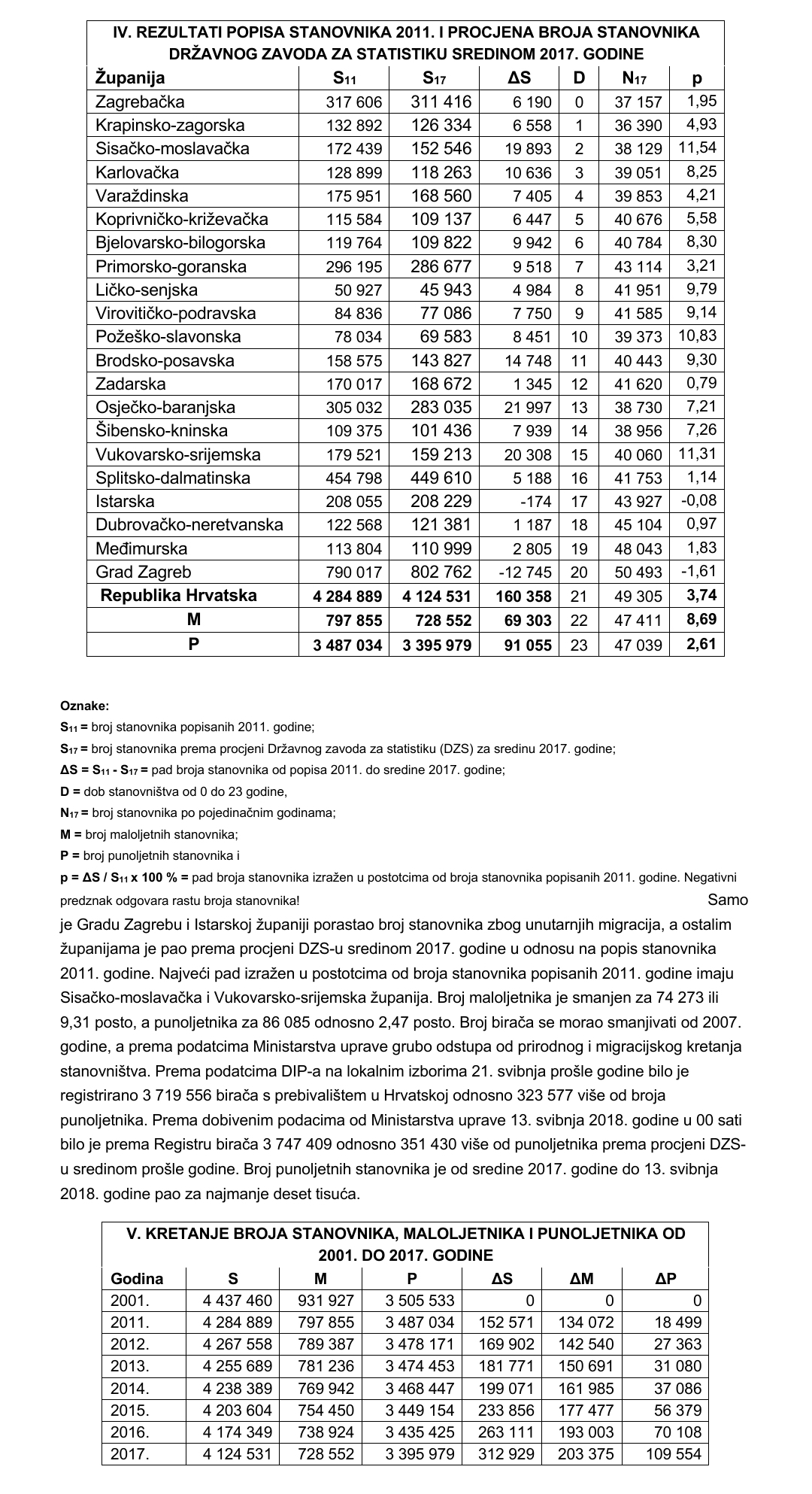 4. Rezultati popisa stanovnika za 2011. i procjenu broja stanovnika Državnog zavoda za statistiku za sredinu 2017. godine,