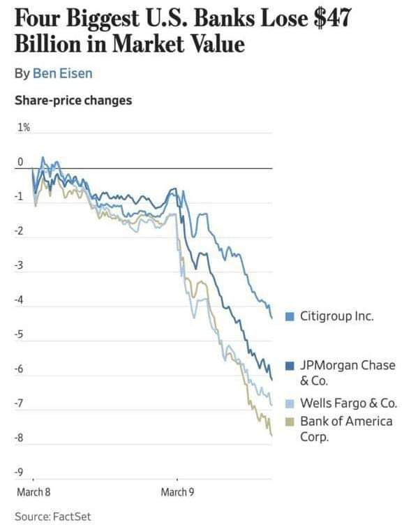 Najgori pad bankovnog segmenta od COVID-19. TOP-4 američke banke izgubile su danas 52 milijarde dolara kapitalizacije.