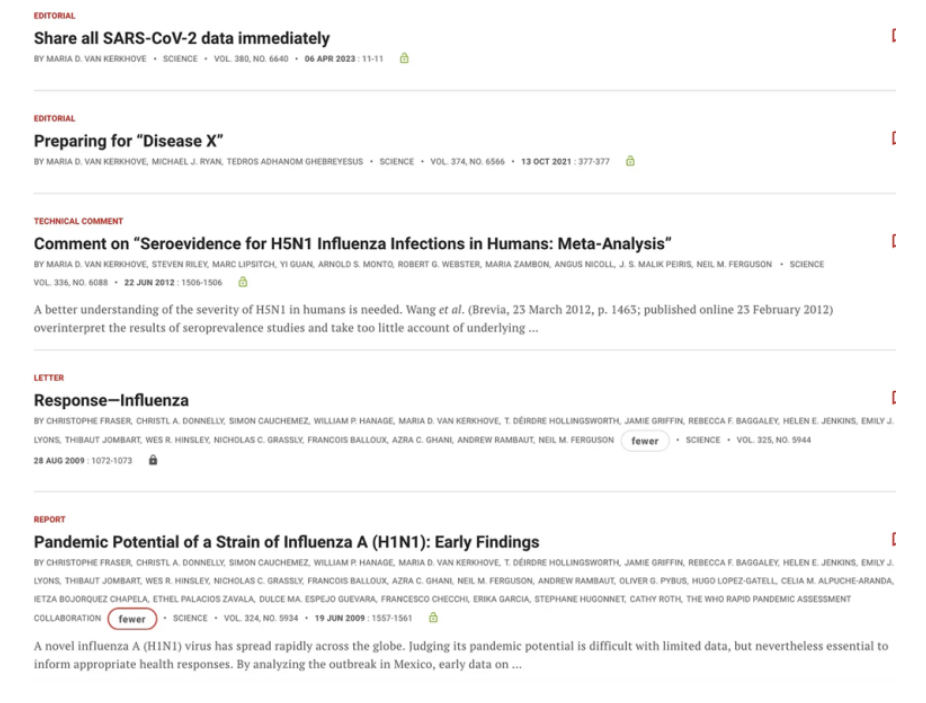 Broj 5 (također iz 2009. ) koautori su, uz Mariju, William Hanage , Francois Balloux , Neil Ferguson i Andrew Rambaut. Rambaut je bio koautor članka Nature Medicine coverup.