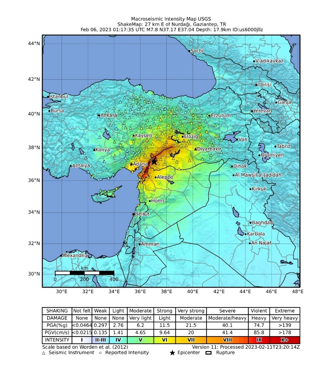 Prvi jači katasfrofalni potres magnitude 7,8 u Turskoj i Siriji 6.2.2023. koji je odnio preko 50.000 života