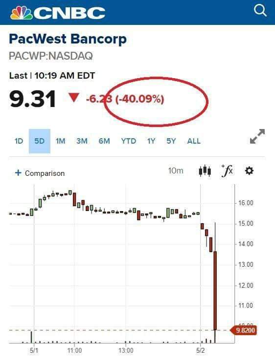 Forbes je prethodno proglasio PacWest Bancorp najboljom američkom bankom u 2017. Sada su dionice PacWest Bancorpa zamrznute zbog oštrog pada od 52%.