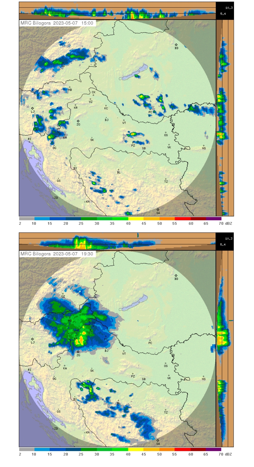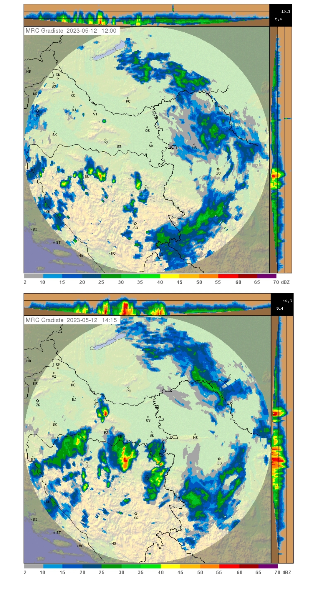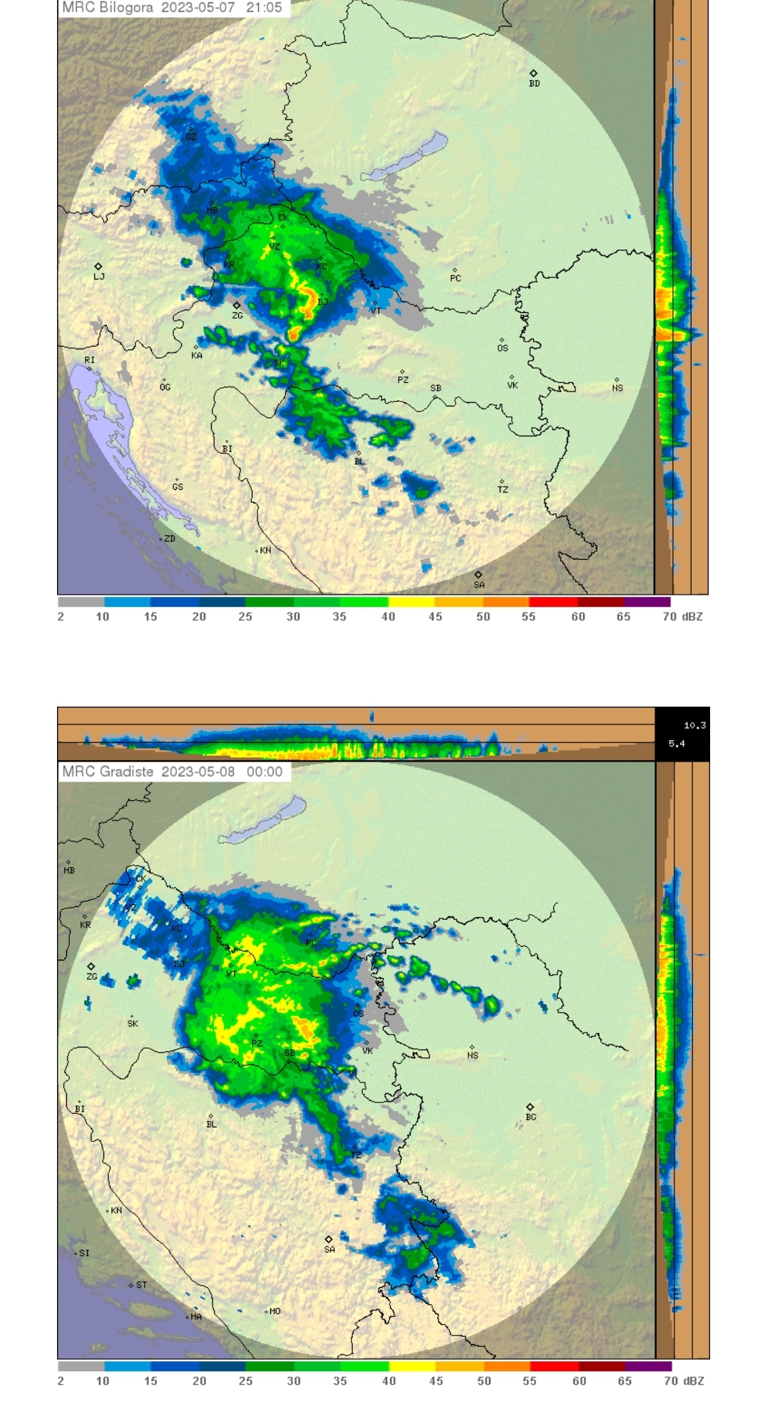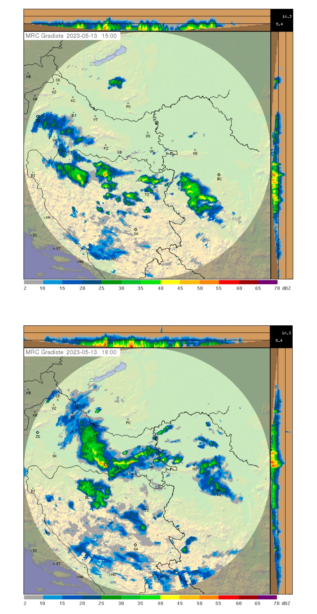 Ponavljaju se prethodne tri godine kada oluje kreću u mjesecu svibnju, a usjevi i imovina građana RH nije zaštićena sustavom OT. Tko je zato kriv? Da se to desilo dajem najkraći prikaz za dane 7., 12. i 13. svibnja 2023. godine (što su dijelovi radarskih odraza crveniji, to su i više tučoopasni).