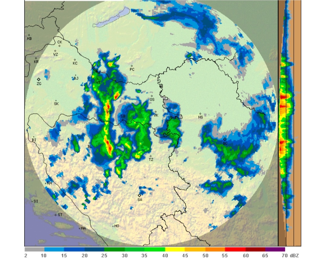 U tijeku noći oblačne kišne trake posvuda, a u Dalmaciji ima i konvekcije. Prijepodne se formira linija konvekcije od Drine preko BiH, sve do Gorskog kotara, koja se pomiče sa juga prema branjenom području. Navedena linija sporo prilazi branjenom području, da bi poslijepodne poslije 15 sati zahvatila istočno i središnje branjeno područje sa pojedinim jezgara do 55 dbz jačine. Prešavši područje Gorica, Gradišta, Osijeka i Bilogore tijekom večeri oblačni konvektivni sustav izlati u Mađarsku. Istovremeno veliki oblačni sustav kreće se preko južnog Jadrana, Dalmacije i Hercegovine na istok i sjeveroistok i zahvata ponovo branjeno područje. Bilo je tuče ponovo u Virovitičko-podravskoj županiji. Trebalo bi paliti generatore za istočno i središnje branjeno područje.