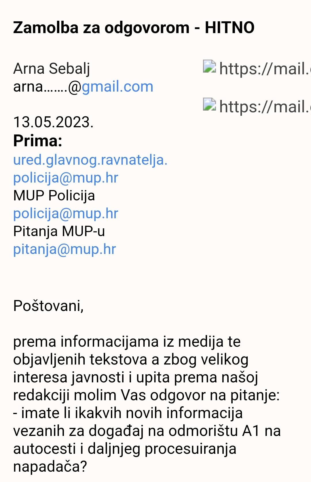 Mediji su se 13. svibnja 2023. raspisali o vrlo neobičnom ali i opasnom događaju na odmorištu na autocesti A1. Kako je riječ o djeci te kako smo dobili brojne upite zabrinutih i roditelja ali i građana uputila sam mail nadležnima.