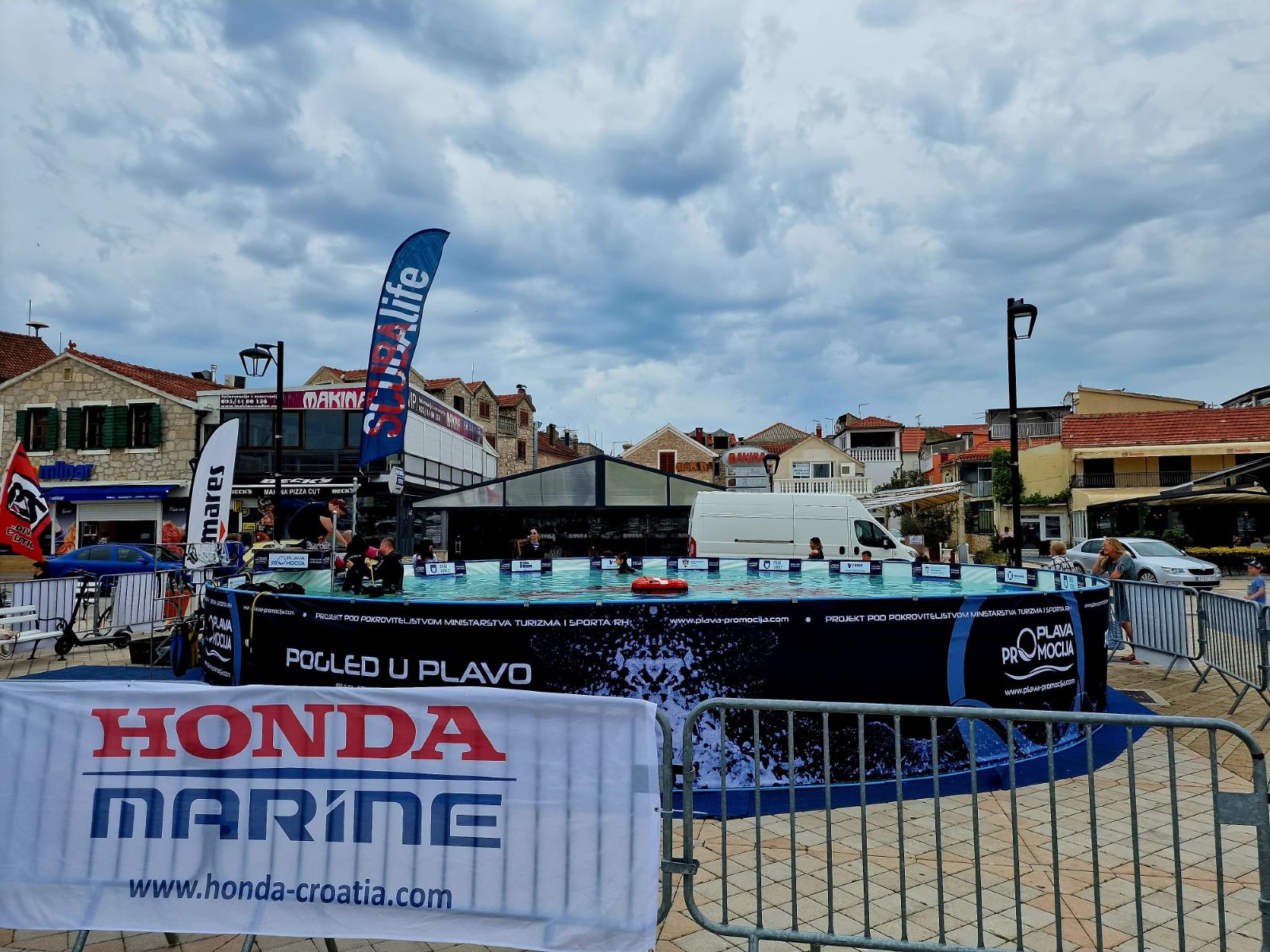 Više od dvije stotine posjetitelja tijekom ovog vikenda imalo je priliku spoznati čari i ljepote ronjenja s punom ronilačkom opremom u potpuno kontroliranim i sigurnim uvjetima prepoznatljivog montažnog desetmetarskog bazena Pogled u plavo koji je bio montiran na prelijepoj vodičkoj rivi uz podršku Grada Vodica, Turističke zajednice grada Vodica i Agencije Plava promocija.