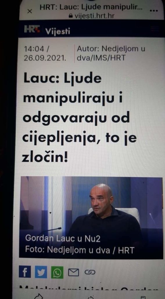 Prestrašno, moja majka je isto primila “cjepivo” AZ jednu, ali hvala Bogu nije “ažurirana”… Tako su odlučile same žene koje s njom piju jutarnju kavu i to je skoro bila utrka koja će prije primiti spasonosno “cjepivo”. Neke su imale nuspojave i to je bilo odlučujuće da se dalje ne “ažuriraju”. A neki od mojih rođaka su prekinuli svaki kontakt samnom jer sam ja širitelj zavjere koji nema pojma i ne želi slušati savjete “stručnjaka”, ljudi koji znaju što i kako treba, tako da sam izgubio puno rodbine i “prijatelja” koji nikad neće priznati da su prevareni, pa ni na smrtnoj postelji…