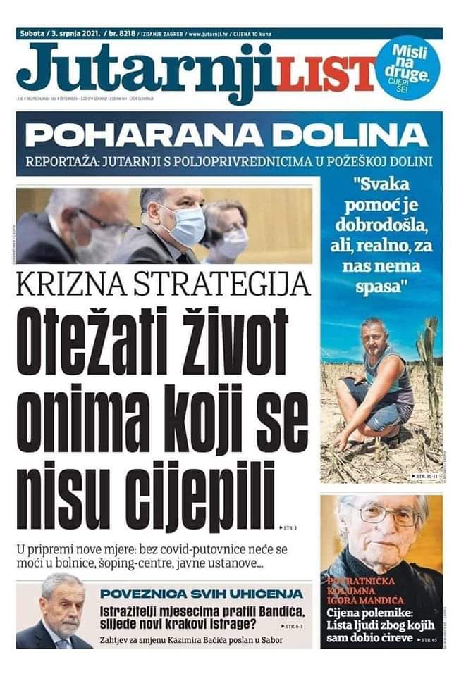 Moja kolegica s posla, ima 38, 40 godina…tu negdje…ne znam točno, ali u svakom slučaju mlada bojala se cijepiti jer ima nekakav genetski poremećaj sa zgrušavanjem krvi pa je stoga otišla u bolnicu da ipak bude pod nadzorom. Trojici liječnika..hematologu..internistu pokazala je nalaze u nadi da joj neće na temelju svega toga preporučiti cijepljenje. Međutim, rekli su da nema nikakvih problema i da slobodno može i treba!? Nije prošlo pola sata i postala je nepokretna, i ruka i noga oduzeta. Nakon tjedan dana kad je došla k sebi pustili ju doma. Danas sam razgovarao s njenim ocem i kaže da nije dobro…nogu uopće ne osjeća, ne može hodati ni sa štakama. Trebala je ići na Rebro u Zagreb, ali neće ju primiti zbog situacije zbog Covida. Zvala je poznanicu doktoricu koja je također radila kod nas, a već 2 ili 3 godine je u Zagrebu. Doktorica je cijepljena sa 2 doze, a trenutno je kao pacijent u Dubravi sa izuzetno teškim oblikom Covida i velikim problemom s plućima!