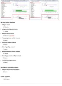 -Ako zagrebete u bazu podataka EU-a za ozljede od cjepiva koju je stavila na raspolaganje EMA, moći ćete vidjeti da postoji ukupno 14 različitih nuspojava koje se odnose na multiplu sklerozu, naveo sam ih zajedno s brojem svake od njih ispod Multipla skleroza (675 slučajeva) i recidiv multiple skleroze (567 slučajeva, uključujući 2 smrtna slučaja) dvije su nuspojave s apsolutno najviše nuspojava, a ja sam ih snimio i objavio ispod, a ostale nuspojave možete pronaći u popis ispod snimaka zaslona.