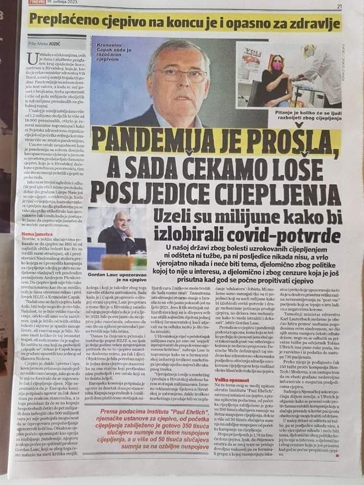 Moj dobar poznanik, 36 godina.Status 3x pfizer.Preminuo u snu od mozdanog udara.Iz postovanja prema obitelji zacrnio sam podatke o identitetu. Ako dobijem dozvolu obitelji objaviti cu pune podatke. Ovo je treci covjek kasnih tridesetih od mojih znanaca koji je preminuo. U kontaktu sam s obiteljima preminulih. Svi sumnjaju na cjepivo. Razgovarao sam s svima osim s obitelji zadnje preminulog poznanika jer je prerano. Obitelji preminulih osamljeni su u svojoj tuzi i ljutnji, vise ih nije briga za misljenje okoline od kad su izgubili voljene, mislim da ce istupiti javno. Kada se obitelji na to odluce javiti cu Vam se gđo Arna s svim podatcima pokojnika od statusa cijepljenja do nalaza obdukcije preminulih.