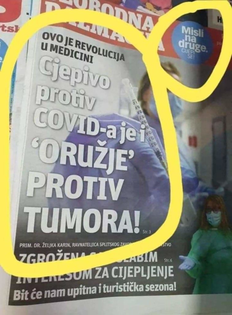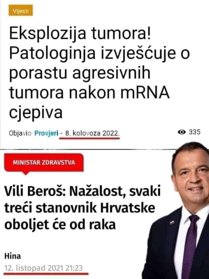 Susjed se žali, punica mu je vrlo loše, odjednom karcinom. Populacija koja je sigurno cijepljena, neznam koliko puta. Nije prošlo ni 2 tjedna, citam osmrtnice u Novom listu. Žena je turbo brzo umrla.