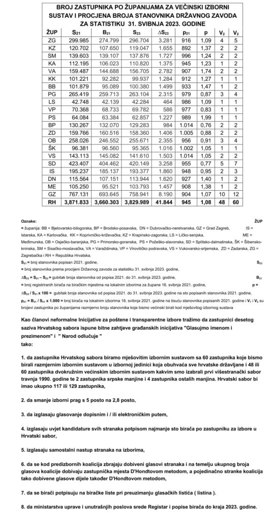 Nama potpisnicima peticija građanskih inicijativa „Birajmo zastupnike imenom i prezimenom“ 2014. godine i „Narod odlučuje“ pisci Ustava Vladimir Šeks i Krunislav Olujić, predsjednik Ustavnog suda Miroslav Šeparović, Dražen Bošnjaković predsjednik Odbora za Ustav, Poslovnik i Politički sustav Hrvatskog sabora i potpredsjednica Vlade magistrica agronomije Anja Šimpraga nisu još odgovorili jesu li zastupnici srpske manjine i zastupnici dijaspore izabrani sukladno članku 45. i 72. Ustavu Republike Hrvatske? Ministar pravosuđa i uprave Ivan Malenica je također izbjegao odgovoriti jesu li zastupnici srpske manjine i zastupnici dijaspore izabrani sukladno članku 45. i 72. Ustava RH i nije objavio popise 3,646.636 birača po županijama, gradovima i općinama za 19. svibnja 2023. godine kako bismo mogli analizirati odstupanja broja birača od prirodnog i migracijskog kretanja stanovništva i kvalitetno sudjelovati u javnoj raspravi o HDZ-ovom prijedlogu Zakona o izbornim jedinicama.