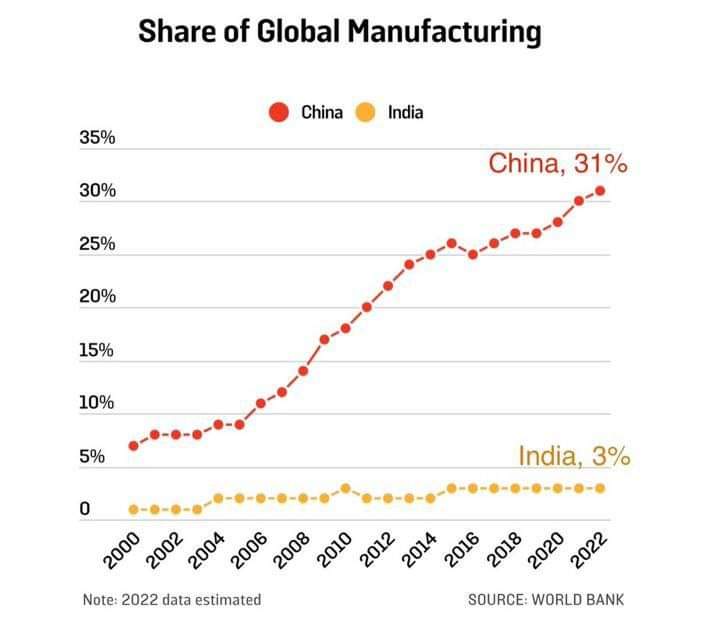 Kina ne samo da je ostala dominantna svjetska proizvodna sila, već nastavlja rasti svoje vodstvo, kontrolirajući 31% proizvodnje svih vrsta robe u svijetu.