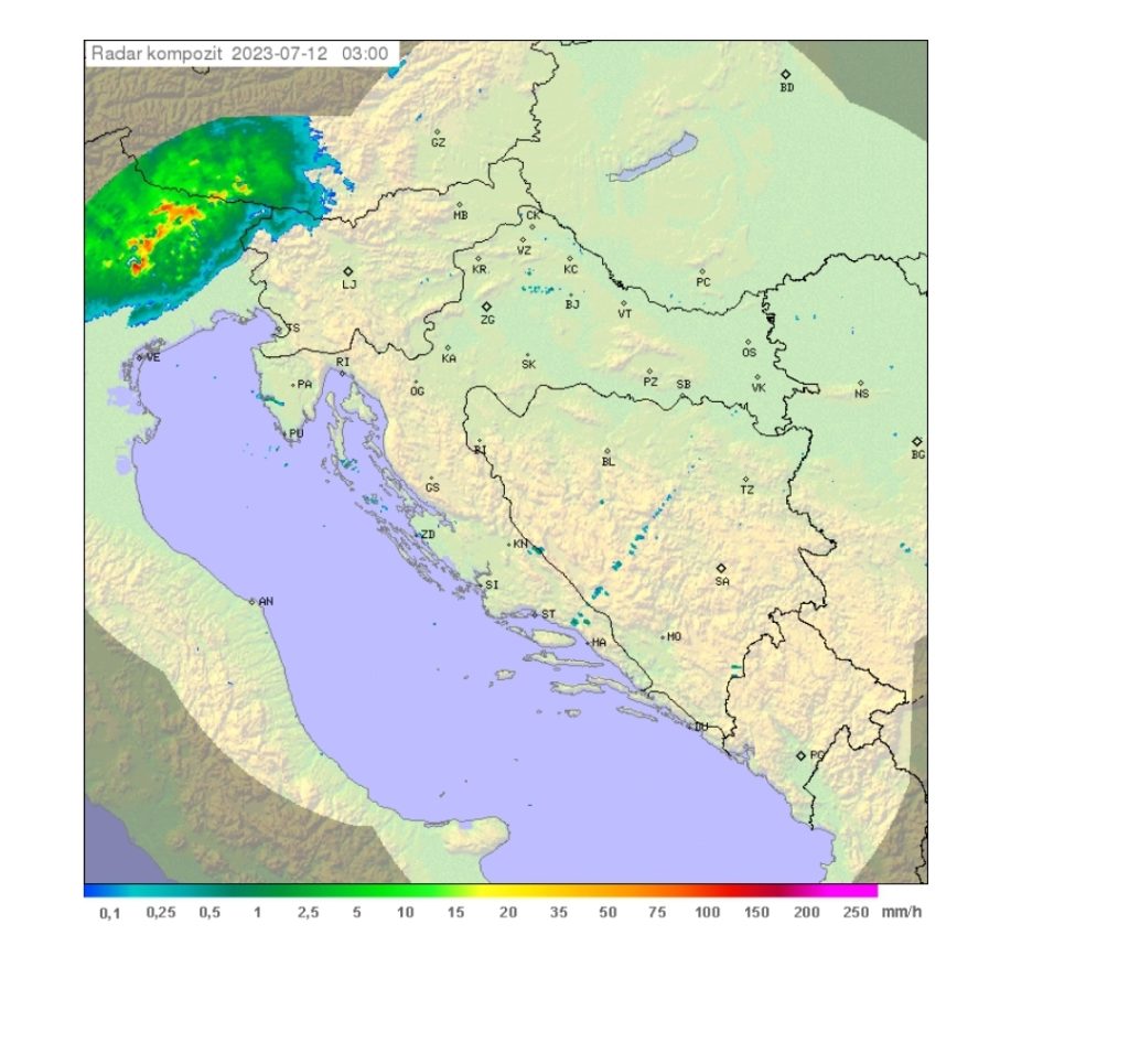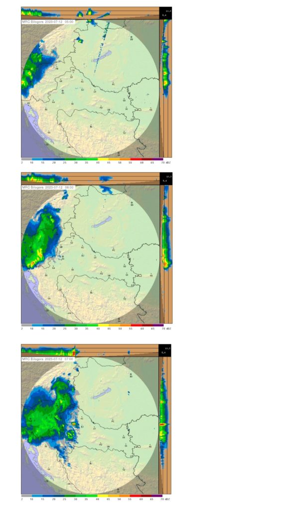 Zadnja izmjena 12.07.2023. u 06 h (izmjena nastaje dolaskom dežurnog prognostičara na posao) kada je oluja već bila blizu nas.