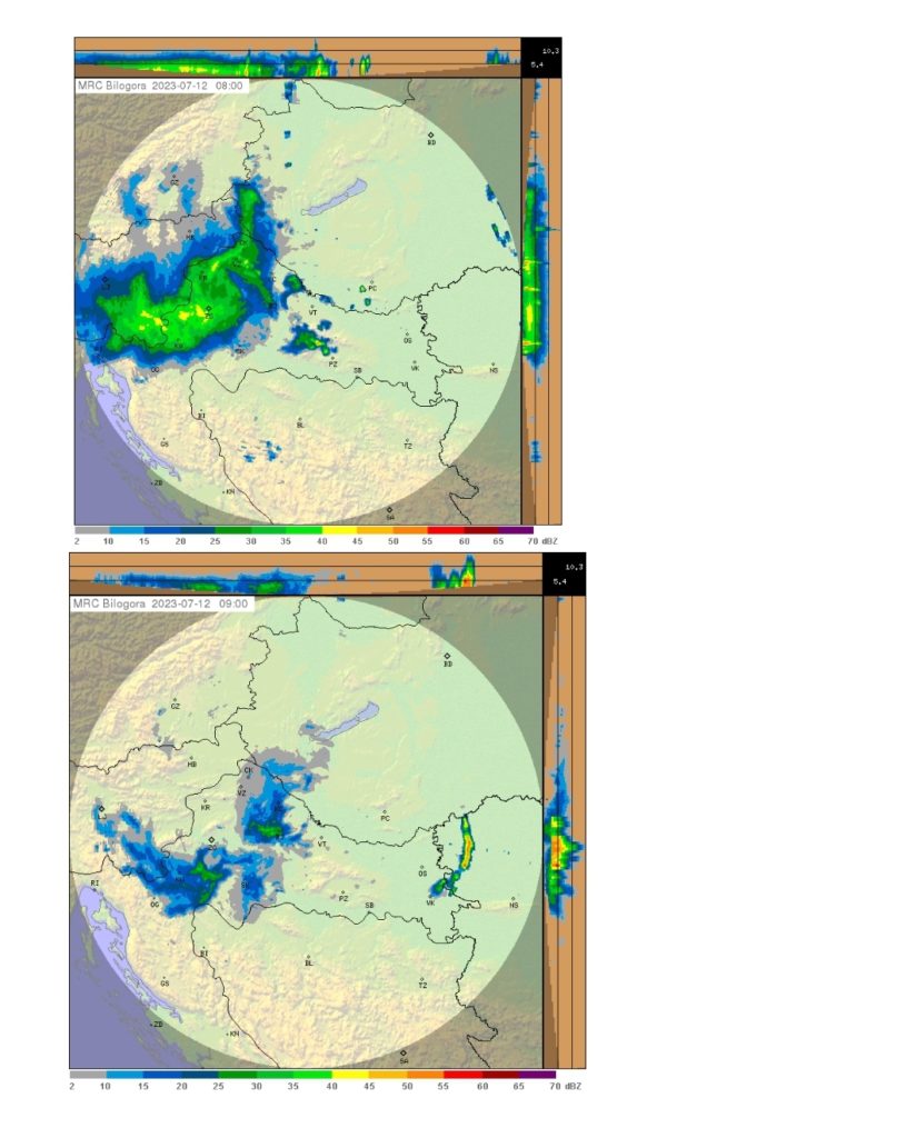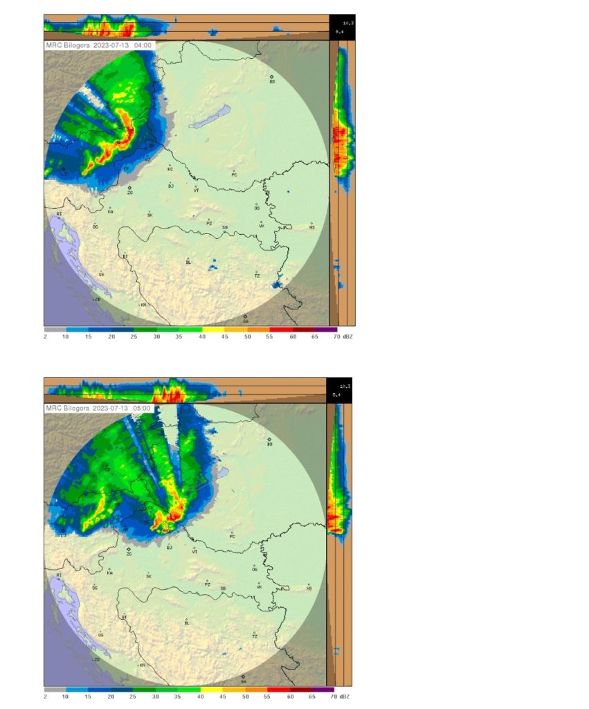 A možda se uzaludno mučimo, ako geoinjženjering na priznaje sve do sada korištene modele, nego radi po svome (njihovom) !! Inače i ove noći 13.7.2023. se ponavlja isti scenario, ali sa premještanjem nešto sjevernije od prethodnog dana. Poslije ponoći kreće novi paket konvekcije i tijekom ranog jutra zahvata Sloveniju, te rubno Međimurje i Varaždin, glavninom u Austriji i Mađarskoj. Oblaci su puno jači nego jučer (i do 65 dbz jačine).