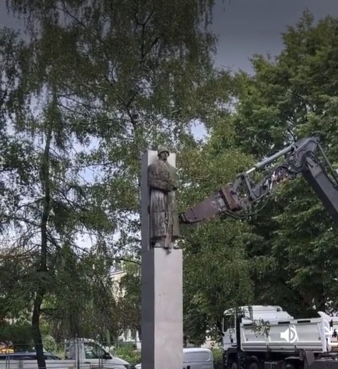 Pogledajte kako u Poljskoj pada spomenik sovjetskom vojniku – prema vladinom programu .