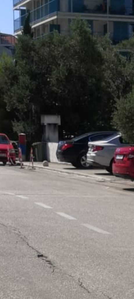 Jasno se vidi da se pješačka zona koristi za parkiranje vozila gostiju, iako se reklamira da vila ima 4 parkinga za goste, u biti nema niti jedno pravilno parkirno mjesto, jer vozila prelaze na pješačku zonu i majke sa kolicima niti dan danas ne mogu proći, već moraju ići po prometnici.